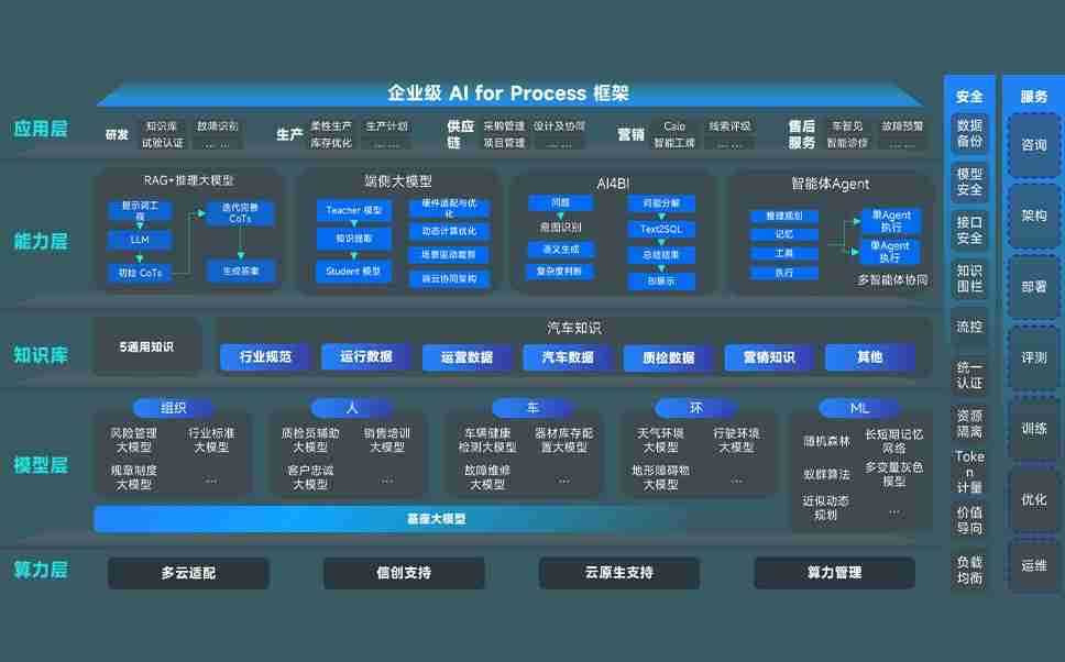 豪门国际问学智车解决方案是一套基于AI技术的汽车行业智能化系统,,,覆盖从底层算力到顶层AI应用的全栈方案。。。方案由算力层、、模型层和应用层组成:算力层,,方案支持多种一体机配置,,,具备云端灵活部署、、、多云适配以及动态优化计算资源的能力;模型层,,,豪门国际问学平台版提供了企业级AI应用一站式构建与管理平台,,,支持基于后训练强化技术的汽车企业专属模型的训练、、、、评测和运营;应用层,,豪门国际问学DeepSeek版提供包括超级员工、、、、智能招采、、、、智能营销、、智能客服、、AI for BI等一系列解决方案,,可助力汽车行业实现数字化转型,,,,让管理更智能、、响应更敏捷。。。。